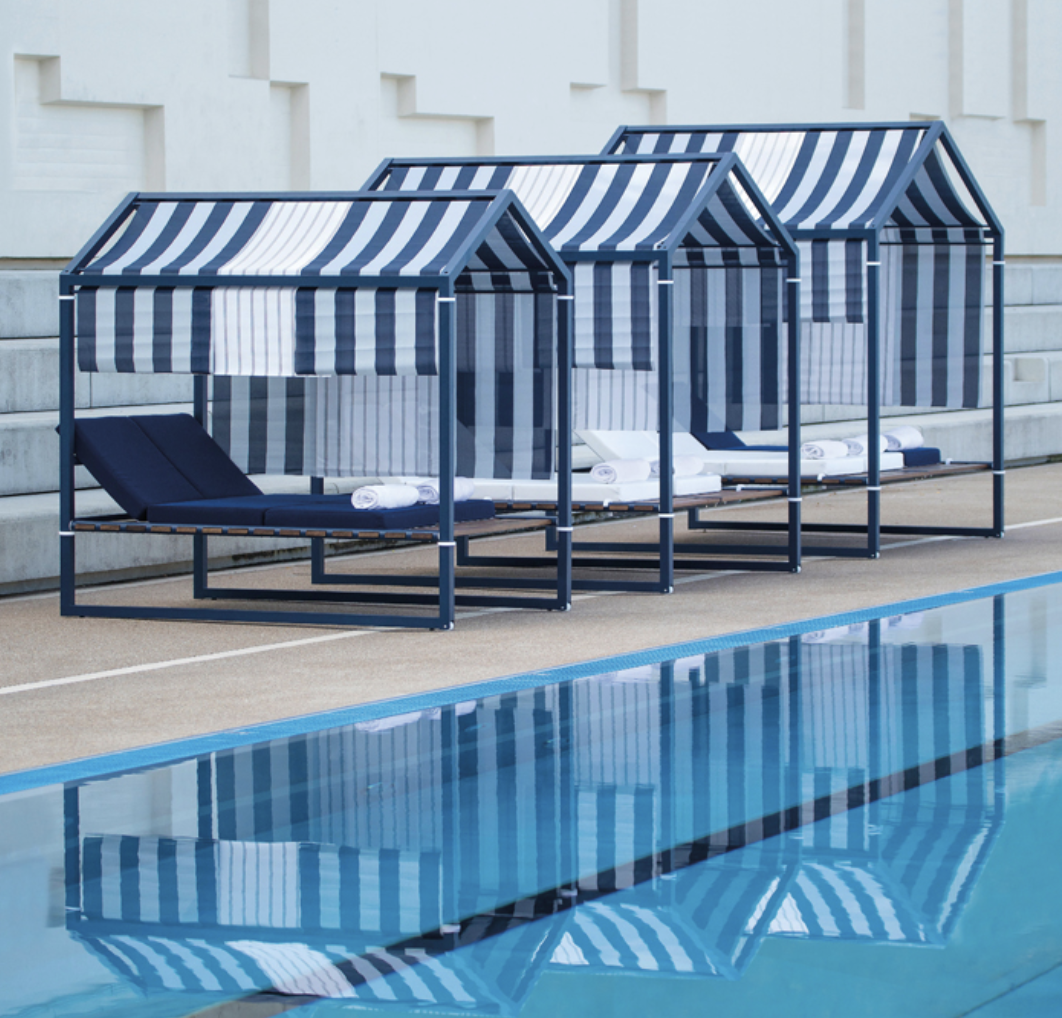 Relax by the pool in style! EGO Paris’ Cabine Gigognes or Nested cabins give you the opportunity to doze off under its vibrant canopies without worrying about the sun’s rays.